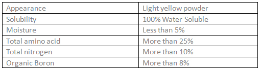 - Amino acid chelated Boron soluble powder is designed for all plants to prevent or correct nutrient deficiencies that may limit crop growth and yields.