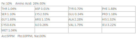 - Through Modern Chemical Coordination Technology, combining with Fe ions by the proportion 1:1, Amino Acid formed the organic element which
